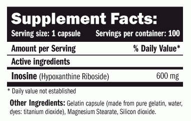 L’INOSINE est un complément pour les sportifs ayant des besoins énergétiques importants. L’inosine est un nucléoside précurseur de l’ATP. La principale fonction de l’inosine dans l’organisme est de fournir de l’énergie au muscle. Elle produit de l'énergie immédiate sous forme d'ATP pour la contraction musculaire, y compris dans des conditions déficitaires en oxygène. L’inosine stimule la métabolisation protéique et augmente l’affinité de l’hémoglobine avec l’oxygène, ce qui produit une meilleure oxygénation et favorise la récupération musculaire. L’inosine est très utile pour les sports de force et de résistance. Elle est également recommandée pour les sports de rapidité puisqu’elle suppose une source d’énergie immédiate. Elle augmente l’utilisation de l’oxygène dans le sang à travers ses effets sur le métabolisme des hématies en produisant du triphosphate d’adénosine ou de l’ATP.