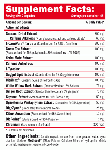 Amix™ THERMOLEAN® est un puissant brûleur de graisses qui combine 17 composants naturels hautement efficaces incluant deux types de caféines, des thermogéniques et des diurétiques. Amix™ THERMOLEAN® est très efficace en période de régime puisqu'il aide à réguler l'appétit et l'envie d'aliments gras. Il combine du Guarana, un puissant stimulant qui accélère le métabolisme, du Citrimax (Garcinia Cambogia) qui réduit la synthèse des acides gras de 40% à 70% après l'ingestion de nourriture, de la L-Tyrosine qui réduit l'appétit et permet une certaine maîtrise de soi face aux aliments. Il accélère le métabolisme en aidant à activer la thermogénèse, contient de la Yerba Maté qui stimule le système nerveux ainsi que la caféine qui augmente l'énergie et agit comme un puissant diurétique pour  favoriser la diurèse (élimination des liquides). Il contient également de l'extrait de Jiaogulan (Gynostemma pentaphyllum) qui réduit le niveau de graisse dans le sang, aide à la digestion et protège l'estomac, augmente la vitalité et prévient les effets toxiques des médicaments chimiques. De plus, il contient de la caféine Alcaloïde qui agit sur le système nerveux, favorise la contraction des fibres musculaire "lisses", retarde la sensation de fatigue, augmente l'activité mentale et réduit la sensation de sommeil. Il contient du Guggul qui accélère le métabolisme en provoquant la thermogénèse, et réduit les niveaux de mauvais cholestérol et de triglycérides dans le sang. Il contient également du Picolinate de chrome un composant qui diminue les niveaux de glucose, réduit la graisse corporel et favorise le développement de la masse musculaire alors que l'extrait de Cayenne a des propriétés thermogéniques qui augmente la température corporelle. De plus, Amix™ THERMOLEAN® contient des composants diurétiques ainsi que des stimulants. Amix™ THERMOLEAN® est donc le choix idéal pour les personnes souhaitant perdre de la graisse et obtenir une silhouette svelte sans graisse de manière saine et naturelle.