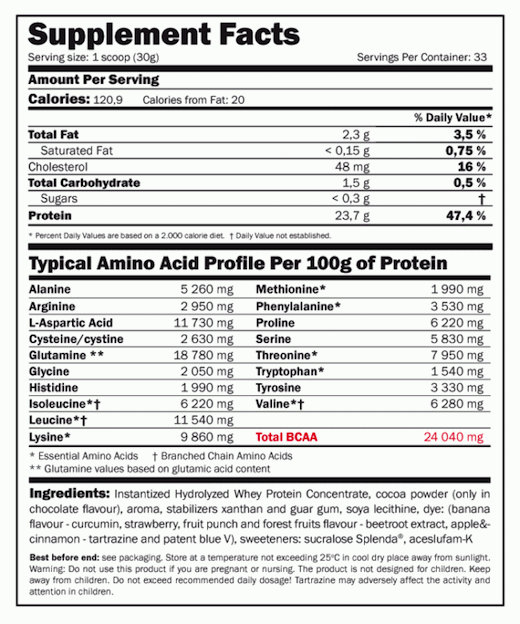 Amix™ PureWhey Hydro est une protéine enzymatique (PRÉDIGÉRÉE) hydrolysée développée pour les athlètes professionnels. Elle dispose d'une forte valeur biologique et contient un large spectre d'acides aminés. Cette protéine utilise le système d'hydrolyse avec des acides aminés peptides, dipeptides et tripeptides afin de raccourcir le délai d'absorption de la protéine de lactosérum. Elle contient un volume très important d'acides aminés ramifiés BCAA et de glutamine, deux composants essentiels qui protègent la masse musculaire de la destruction pendant les entraînements intensifs, tout en fournissant aux muscles l'énergie nécessaire pour permettre de réduire le temps de récupération après un entraînement physique intensif. Amix™ PureWhey Hydro est la protéine idéale pour les sportifs souhaitant augmenter leur prise de masse musculaire sans graisse puisqu'elle contient chacun des ingrédients nécessaire à cette fin. De plus, elle est fabriquée à partir d'une technologie de dernière génération.