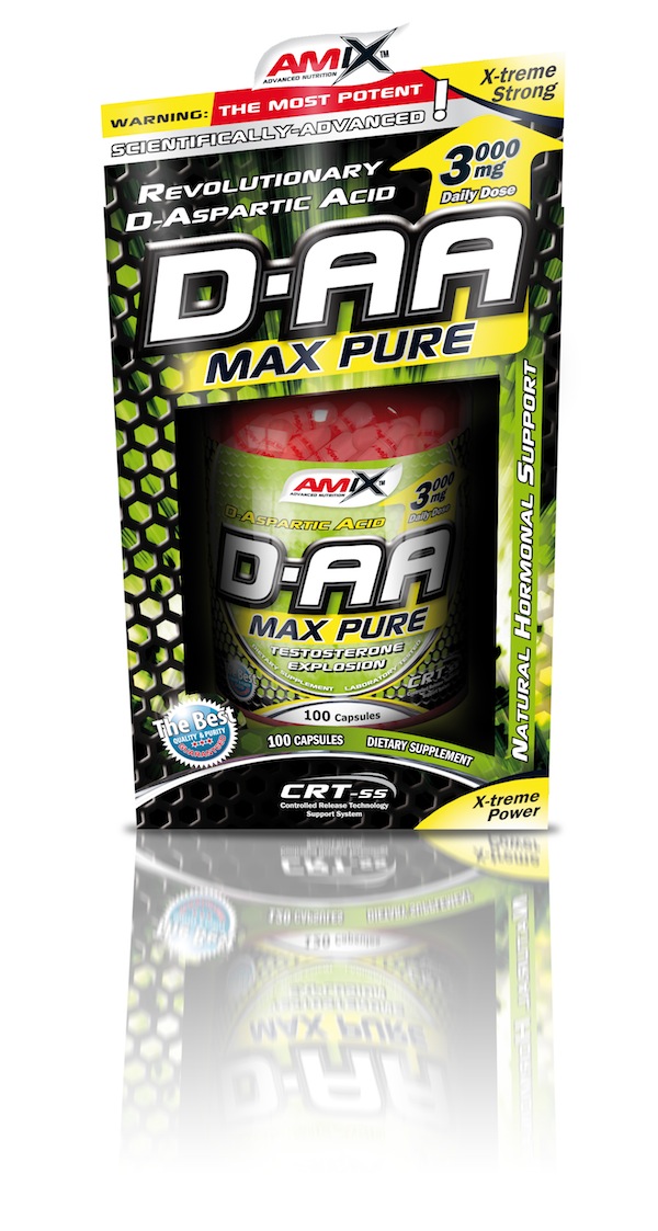 Amix™ D-AA Max Pure est un nouveau complément révolutionnaire qui agit comme un régulateur naturel des hormones anabolisantes, la testostérone et l’hormone de croissance, qui sont libérées dans l’organisme humain. L’Acide D-Aspartique agit comme un neurotransmetteur pour les parties du système nerveux qui interviennent dans la production d’hormones. Il stimule la libération de LH et de HGH de la glande pituitaire tout en ayant un effet stimulant sur les testicules pour la production de testostérone. Une étude réalisée récemment a démontré qu’il génère une augmentation significative de la production de testostérone, ce qui, associé à un entraînement et à une alimentation adaptés, permet une augmentation de la masse musculaire sans graisse. Amix™ D-AA Max Pure contient des métaboliseurs pour permettre une assimilation complète et rapide du principe actif et augmenter ainsi l'efficacité du produit.