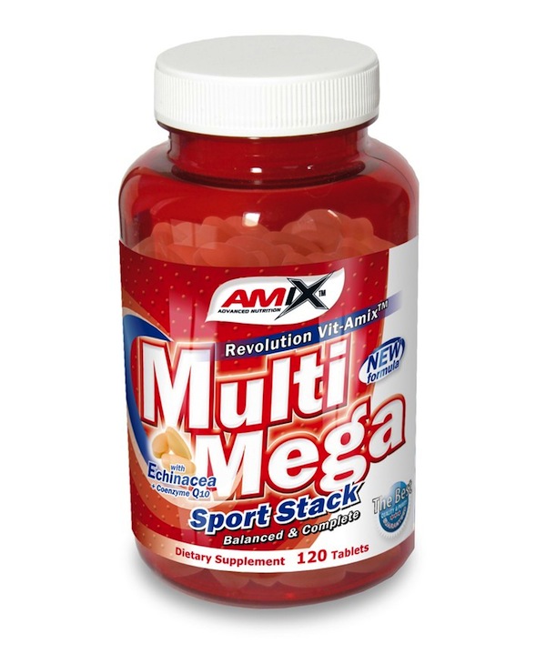 Amix™ MULTI MEGA STACK® est un complexe vitaminique très complet contenant toutes les vitamines et tous les minéraux nécessaires au fonctionnement de l'organisme. Amix™ MULTI MEGA STACK® est très utile en cas de stress, d'épuisement, de manque d'énergie, de faibles défenses immunitaire, de régime très exigeant ou d'entrainement physique très exigeant pour les sports d'endurance. Amix™ MULTI MEGA STACK® renforce le système immunologique, favorise le fonctionnement normal du système nerveux et la synthèse des acides aminés et des protéines. Il a des propriété anti-oxydantes, agit comme une source naturelle d'énergie, aide au renforcement vasculaire et agit dans le fonctionnement normal de la prostate. Il contient une grande quantité de vitamines du groupe B, très important pour la métabolisation des nutriments et des protéines chez les sportifs recherchant une prise de masse musculaire sans graisse. 1 comprimé d'Amix™ MULTI MEGA STACK® apporte toutes les vitamines, les minéraux et les anti-oxydants nécessaire au bon fonctionnement correct de l'organisme, évitant ainsi les risques de carences liés au régime d'un sportif ou de toute personne souhaitant améliorer son rendement physique et mental.