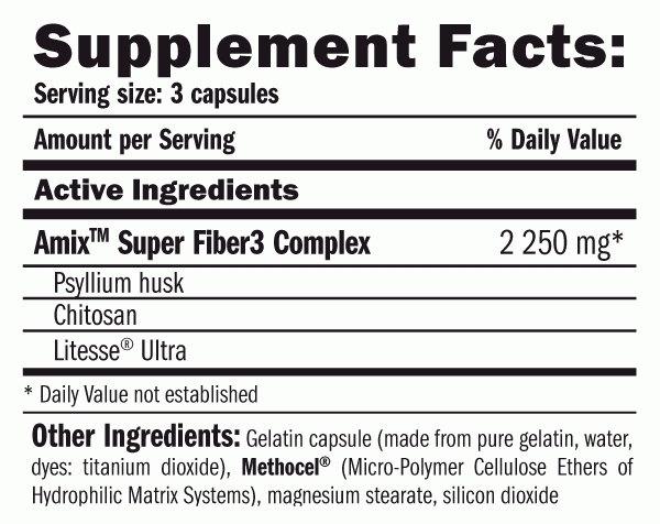 Amix™ Super Fiber3 Plus+ est un supplément a base de fibres naturelles contenant du Psyllium, du Chitosan et des fibres prébiotiques (Litesse Ultra ®). Amix™ Super Fiber3 Plus+ est conçu pour aider à l'élimination des toxines de l'organisme et maintenir le système digestif en bon état. Amix™ Super Fiber3 Plus+ contient du Psyllium pour soulager la constipation et ramollit les selles, réduit l'accumulation de toxines et protège la paroi de l'estomac. Il contient également Chitosan qui est une fibre naturelle a base de Quitine qui aide à éliminer l'excès de graisse et d'améliorer le taux de cholestérol. Amix™ Super Fiber3 Plus+ améliore l'absorption des oligo-éléments et de vitamines. Prévient donc des maladies intestinales, stimule le développement de la flore bactérienne intestinale de forme positive. Amix™ Super Fiber3 Plus+ est un excellent complément pour les personnes qui veulent corriger le problème de la constipation, réduire le taux de cholestérol, réduire le risque de maladies cardio-vasculaires et abaisser la glycémie.